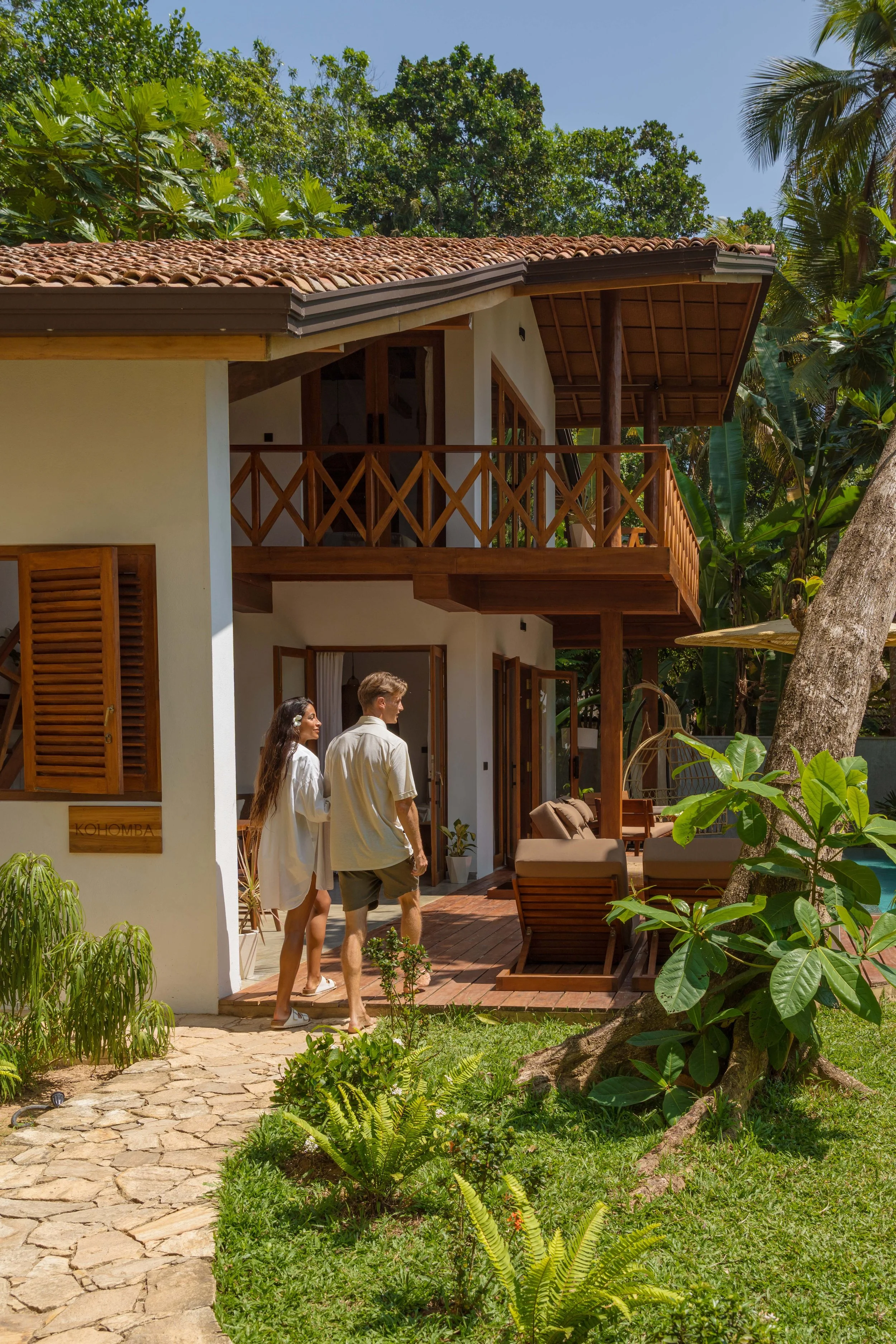 The Kohomba villa is nestled on a hill with a green setting and stunning views over the trees and the ocean from the first floor. Its location is 100 meters away from a pristine beach where natural rock pools are set in the reef.